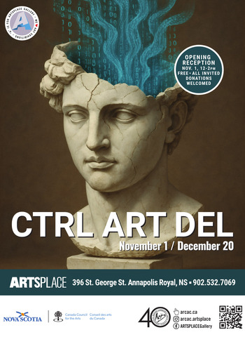ARTSPLACE Gallery invited submissions from artists across Atlantic Canada for CTRL ART DEL — an exhibition exploring how artists position themselves in relation to artificial intelligence, computerisation, robots, and machines.