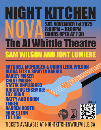 Night Kitchen Nova will put the spotlight on emerging artists from around the province, with a few much loved community groups thrown in the mix. Prepare for another night of unexpected magic, and youthful energy in November's show!