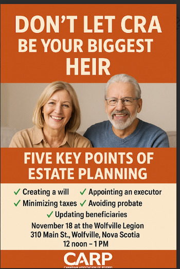 . MoreCARP members and their friends are invited to a free Estate Planning Workshop. Free light lunch provided.