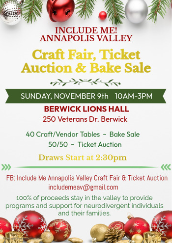 Include Me! Annapolis Valley is holding a Craft Fair & Ticket Auction.
