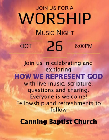 Join us for an evening of Worship music and scripture, led by Wendy Donovan and Rachel Arsenault along with Nathan Patstone playing music. Fellowship and refreshments to follow. Everyone welcome!