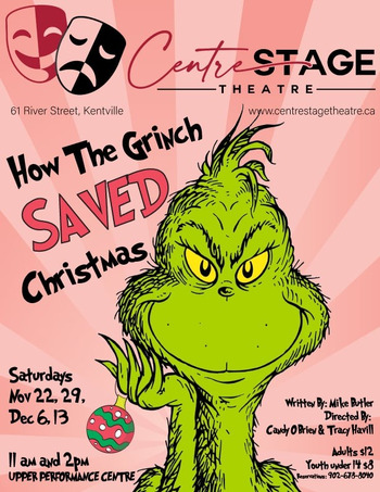 Written by Mike Butler, Directed by Candy O'Brien and Tracy Havill, and starring over two dozen cast members How the Grinch Saved Christmas will have you laughing, singing, and puzzling about who stole Christmas this time. A departure from the classic Suess story, Butler has written Grinch 2025 as a sequel to his 2018 script of the same title. someone has stolen Christmas from the Whos but it wasn't The Grinch (he loves Christmas!) The Grinch sets out in a Nancy Drew/Hardy Boys style mystery to find Christmas and return it to Whoville before it's too late. With the help of many Suess characters, including Max and Cindy-Lou, The grinch aims to save the day--Christmas Day, that is!