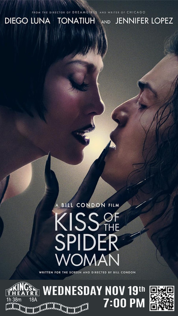 Dreamgirls and Beauty and the Beast director Bill Condon returns to the movie musical in this dazzling Technicolor-hued fantasy. Valentín (Diego Luna), a political prisoner, shares a cell with Molina (Tonatiuh), a window dresser convicted of public indecency. The two form an unlikely bond as Molina recounts the plot of a Hollywood musical starring his favorite silver screen diva, Ingrid Luna (Jennifer Lopez). Based on the Tony Award-winning Broadway musical hit.