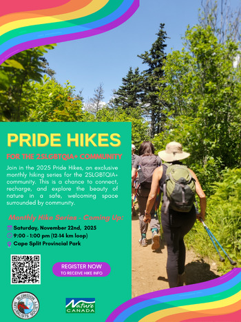 To register for this hike, follow this link: https://blomidonnaturalists.ca/event/pride-hike-cape-split/
