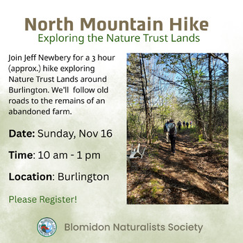 To register, please visit our events page at https://blomidonnaturalists.ca/event/north-mountain-hike-exploring-the-nature-trust-lands/