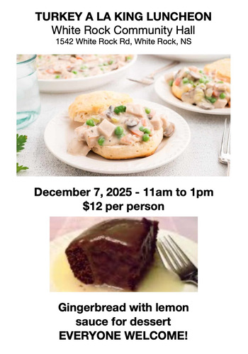 Everyone welcome to turkey a la king with homemade biscuits, cranberry, gingerbread & lemon sauce.