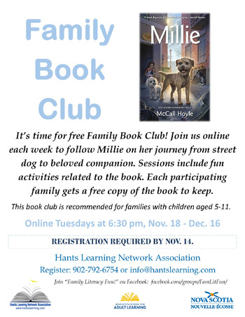 It's fall family book club time! We will be reading Millie by McCall Hoyle. Join us online each week to follow Millie on her journey from street dog to beloved companion. Sessions include fun activities relate to the book. Each participating family gets a free copy of the book to keep.