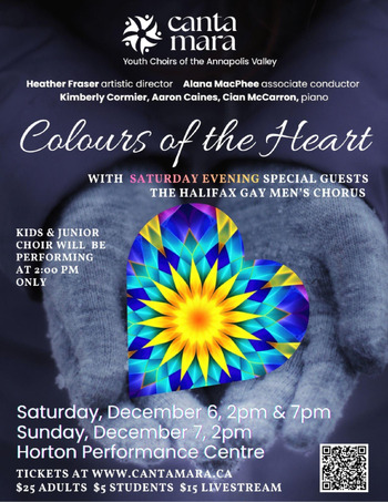 Join the Canta Mara Youth Choirs (formerly Annapolis Valley Honour Choirs) as they sing you into the season at their annual winter concert, “Colours of the Heart”.