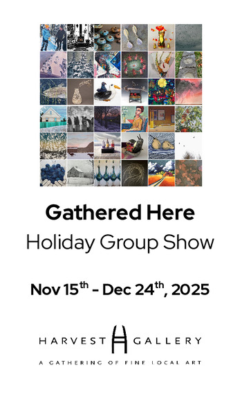Gathered Here features a diverse collection of works by 52 distinguished Nova Scotia artists, all part of Harvest Gallery's permanent roster. The exhibition includes painting, printmaking, fiber art, sculpture, ceramic, woodcarving and turning, jewelry and so much more. Each contributing to a rich collection of artistic expression.