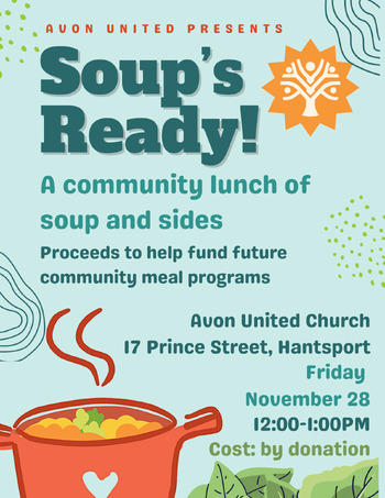 Entry is by freewill donation. All proceeds will go to future iterations of the "Soup's On" program at Avon United.