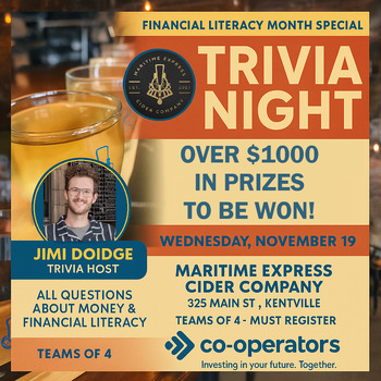 It is Financial Literacy month and we want to have some fun! Join us for an evening of trivia and win some amazing prizes! Example of a question: Who's face is on the $2 Canadian bill?