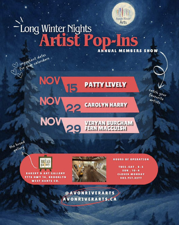 Long Winter Nights is the Avon River Arts Society’s annual members only art showcase, held throughout November and December.