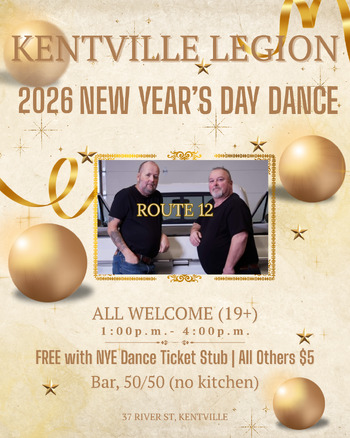 Continue the Jan 1st celebrations by joining us at our New Year's Day Dance with Route 12. Cash bar. ALL WELCOME (19+).