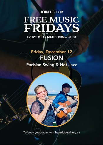 A little sassy; a little sweet… & just the right amount of drama & heat! Come hear what all the fuss is about with FUSION, Halifax, Nova Scotia’s exciting new Parisian swing & hot jazz manouche group! You’ll hear all your favorite jazz classics from Louis, Ella, Frank, Dean, Nina & more, as well as European favorites like Edith Piaf, Charles Aznavour, & ZAZ! And it’ll all be with the swingin’ sass Django Reinhardt is known for, in French, English & a bit of Spanish too, expanding the repertoire to include some soulful & somewhat funky blues, & even Latin covers, as well as a few of your ‘soon-to-be-favorite’ original tunes too! :)