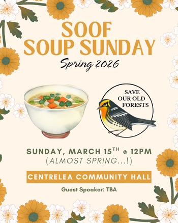 Join SOOF for a free lunch of soup, bread, sweets and tea and coffee! Doors open and lunch is served starting at 12 pm. A special guest speaker will give a presentation starting around 1 pm, with plenty of time for questions afterward.