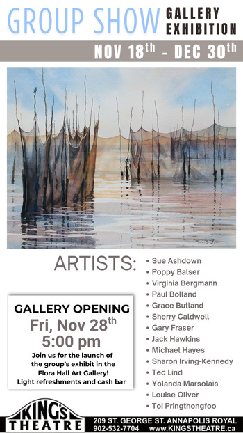 The Group Show can be seen from November 18 – December 30 in the Flora Hall Art Gallery at King’s Theatre.