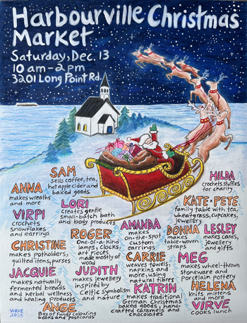 Harbourville Christmas Market is your one-stop destination for last minute Christmas shopping. You will find unique, high-quality locally made arts and crafts and you can enjoy hot drinks, baked goods and hot lunch in a warm and welcoming environment. Of course, admission is FREE!