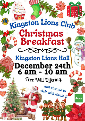 Come share the magic of Christmas Eve morning for our Free Will Offering Community Breakfast! Join friends, family, and neighbours as we celebrate the season together. The Kingston Lions will be busy in the kitchen—scrambling eggs, flipping pancakes, sizzling sausages, and serving up delicious ham, all hot and ready for you!