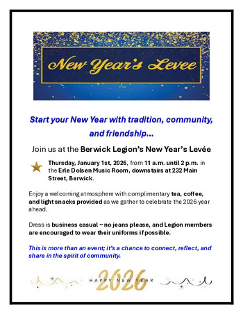 Dress is business casual ~ no jeans please, and Legion members are encouraged to wear their uniforms if possible.