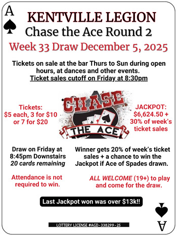 Tickets for this week's draw on sale now at the bar during open hours until 8:30pm Friday. Draw will be at 8:45pm. ALL WELCOME (19+). You don't have to be a Legion member to play!!