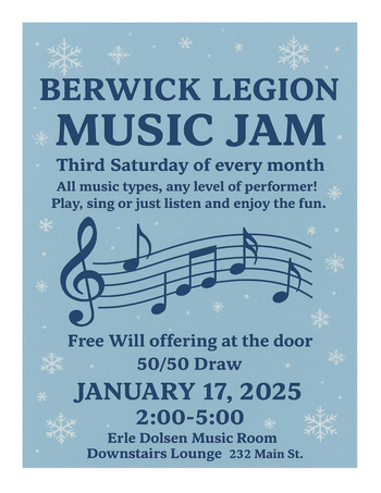 Looking for a toe-tapping good time this winter? Come on down to the Berwick Legion Music Jam, happening the third Saturday of every month!