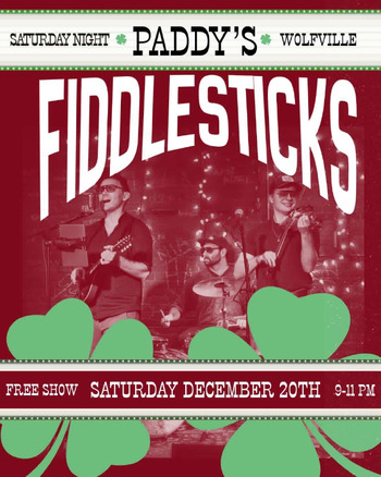 We are pleased to welcome Fiddle Sticks to Paddy's Wolfville!