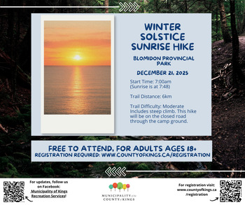 Join us for a magical hike as we welcome the sun on Winter Solstice! This guided hike is designed for adults (19+) looking to explore the trails in a new light—literally! Reconnect with nature, develop outdoor skills, and experience the peaceful beauty of the morning.
