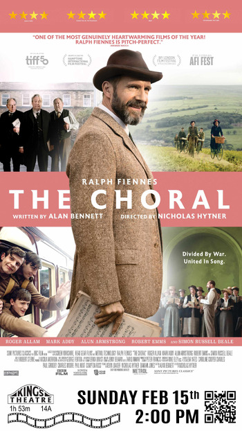 1916. As war rages on the Western Front, the Choral Society in Ramsden, Yorkshire has lost most of its men to the army. The Choral’s ambitious committee, determined to press ahead, decides to recruit local young males to swell their ranks. They must also engage a new chorus master, and despite their suspicions that he has something to hide, their best bet seems to be Dr. Henry Guthrie (Ralph Fiennes) — driven, uncompromising, and recently returned from a career in Germany. As conscription papers start to arrive, the whole community discovers that the best response to the chaos that is laying waste to their lives is to make music together.