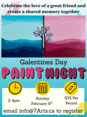 Celebrate the love of a great friend and create a shared memory together. This fun paint afternoon is happening Sunday, February 8th 2-4 pm. All supplies included! Registration is required by email.