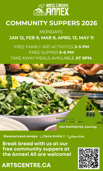 Join for family art activities at 3pm in the downstairs community room, followed by a delicious supper in the main hall from 5-6. This event is by donation - come as you are, all are welcome!
