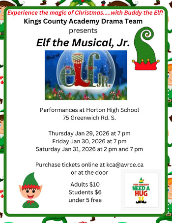 The KCA Drama Team is performing Elf the Musical, Jr at the Horton High School Performance Center.