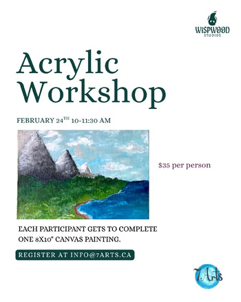 Acrylic 101! Each participant will have the opportunity to complete one 8x10" canvas acrylic painting. All supplies included. No experience necessary. Registration is required by email.
