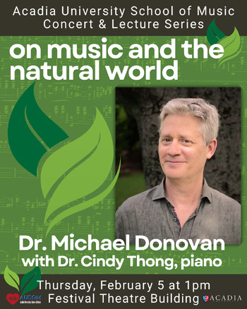 Acadia School of Music Concert & Lecture Series presents “On Music and the Natural World” – a presentation by Dr. Michael Donovan.