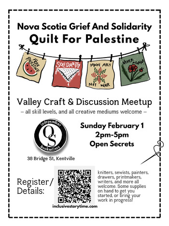 This is a space for collective grief, creativity, and conversation in solidarity with Palestine at Open Secrets Books in Kentville!