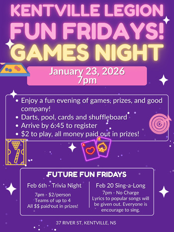 | Mon Jan 26, 7pm Kentville Legion Volunteer Meeting |