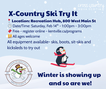 Try skiing with Kentville Parks & Recreation and the Cross-Country Nova Scotia Ambassador Program!