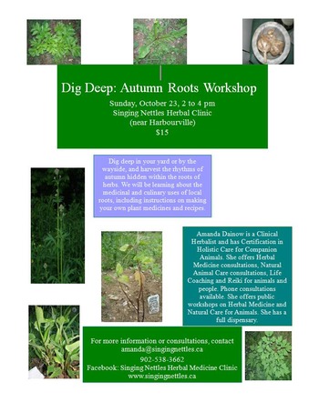 Dig deep in your yard or by the wayside, and harvest the rhythms of autumn hidden within the roots of herbs. We will learn about the culinary and medicinal uses of local roots, including instructions on making your own plant medicines and recipes.