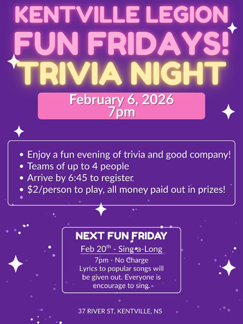 | Mon Feb 2, 7pm Kentville Legion Volunteer Meeting |