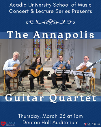 Acadia School of Music's Concert & Lecture Series presents a performance by the Annapolis Guitar Quartet.