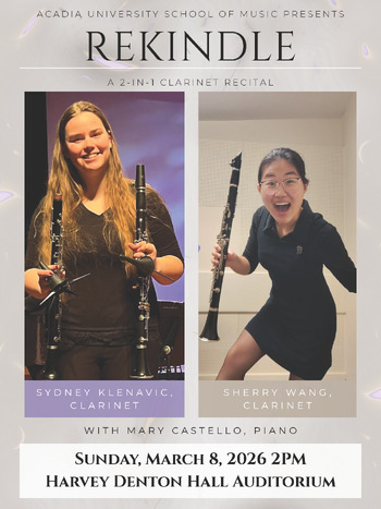 Acadia School of Music presents recitals performed by Sherry Wang and Sydney Klenavic, accompanied by our AUSOM faculty collaborative pianist, Mary Castello.