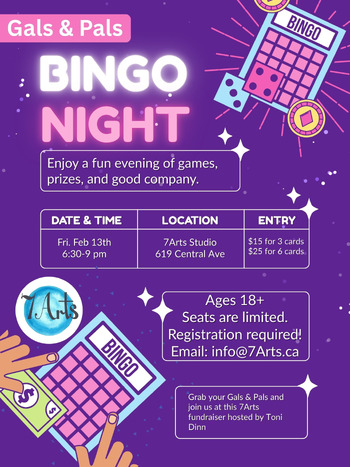 Grab your Gals or Pals (or come solo!) and join us for Galentine’s Bingo Night at our community art studio. Enjoy an evening of bingo, prizes, raffles, and creative fun - all while supporting local art and community programming.