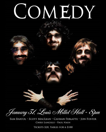 Get ready for an easy night out, with laughs provided by the best of the local comedy scene! Join us at the Louis Millett Community Complex as local comedians Jon Foster (Troy Comedy Night!) and Cassian Ferlatte (K-Town Comedy Night!) are joined by Yuk Yuk's regulars, and Halifax comedy stalwarts, Sam Bartol and Scott MaClean! There will be drinks available for purchase!