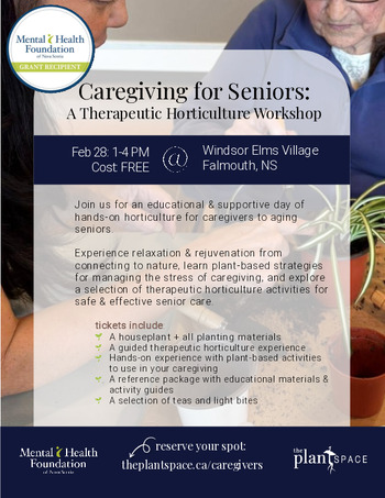 Participants will have the opportunity to practice mindful plant care, plant their own houseplant, and explore therapeutic horticulture activities designed for safe and effective senior care.