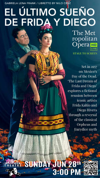American composer Gabriela Lena Frank makes her Met debut with her first opera, a magical-realist portrait of Mexico’s painterly power couple Frida Kahlo and Diego Rivera, with libretto by Pulitzer Prize–winning playwright Nilo Cruz. Fashioned as a reversal of the Orpheus and Euridice myth, the story depicts Frida, sung by leading mezzo-soprano Isabel Leonard, leaving the underworld on the Day of the Dead and reuniting with Diego, portrayed by baritone Carlos Álvarez. The famously feuding pair briefly relive their tumultuous love, embracing both the passion and the pain before bidding the land of the living a final farewell. Yannick Nézet-Séguin conducts the Met premiere of Frank’s opera, a “confident, richly imagined score” (The New Yorker) that “bursts with color and fresh individuality” (Los Angeles Times). The vibrant new production, taking enthusiastic inspiration from Frida and Diego’s paintings, is directed and choreographed by Deborah Colker, following her remarkable 2024 debut staging of Ainadamar.