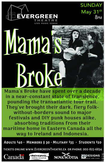 Mama's Broke have spent over a decade in a near-constant state of transience, pounding the transatlantic tour trail. They've brought their dark, fiery folk-without-borders sound to major festivals and DIY punk houses alike, absorbing traditions from their maritime home in Eastern Canada all the way to Ireland and Indonesia.