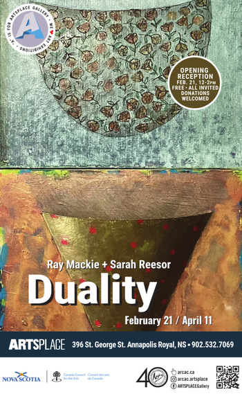 DUALITY is a two-person exhibition of recent, small, mixed media artworks by Sarah Reesor and Ray Mackie.