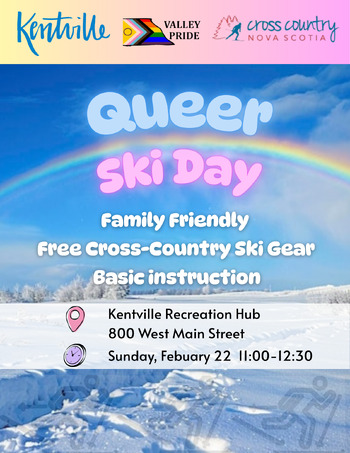 Cross-Country Nova Scotia and the Town of Kentville welcomes the Queer community to drop-in and try cross-country skiing on Sunday, February 22nd from 11:00am - 12:30pm at the Kentville Recreation Hub. Ski gear will be provided (including sit skis and kick sleds) at no cost, however, please pre-register.