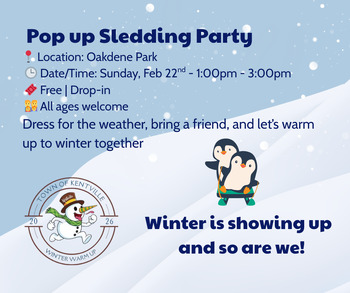 We heard you wanted another Pop Up Sledding Party so here you are! This Sunday, February 22 from 1:00 pm - 3:00 pm at Oakdene Park we will be cruising down the hill and enjoying some fire roasted s'mores.