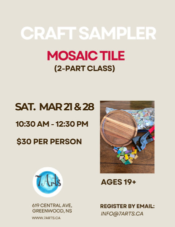 Join our fun, hands-on, two-part class and creatively design and tile your very own mosaic trinket plate, perfect for displaying your style and showing off your handiwork. Dream up something bold and original or choose from our ready-to-use idea templates for an easy, stress-free start. In Part One, you'll plan your design (either from your own imagination or using one of our templates) and learn how to tile your piece like a pro. In Part Two (March 28), you'll grout your creation and watch it come to life before taking home a truly one-of-a-kind finished masterpiece that's uniquely yours - no experience needed! Just bring your creativity and get ready for a colourful, inspiring experience! For ages 19+.