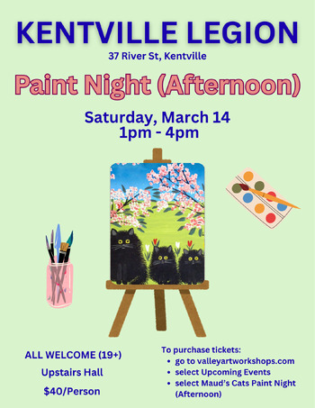 This is a fundraiser so come have lots of fun while supporting your Kentivlle Legion and bring home your own masterpiece. Win/win!!